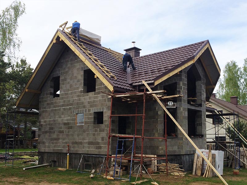 Полностью под ключ с подшивой свесов, установкой водосточки, обшивкой дымоходов.